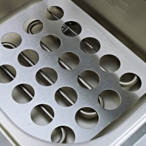 - Bếp có rổ làm ráo dầu của thức ăn sau khi chiên rất tiện lợi. Tay cầm cách nhiệt nên đảm bảo mang lại an toàn cho người dùng khi chiên không bị bỏng dầu.